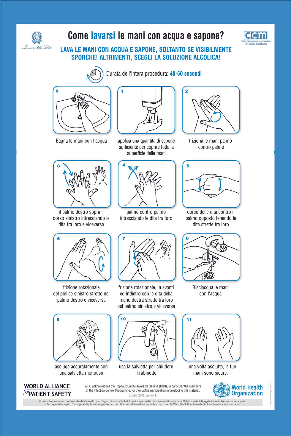 Lavare le Mani - Acqua,Sapone - Soluz.Alcolica - supporto rigido Forex 3mm